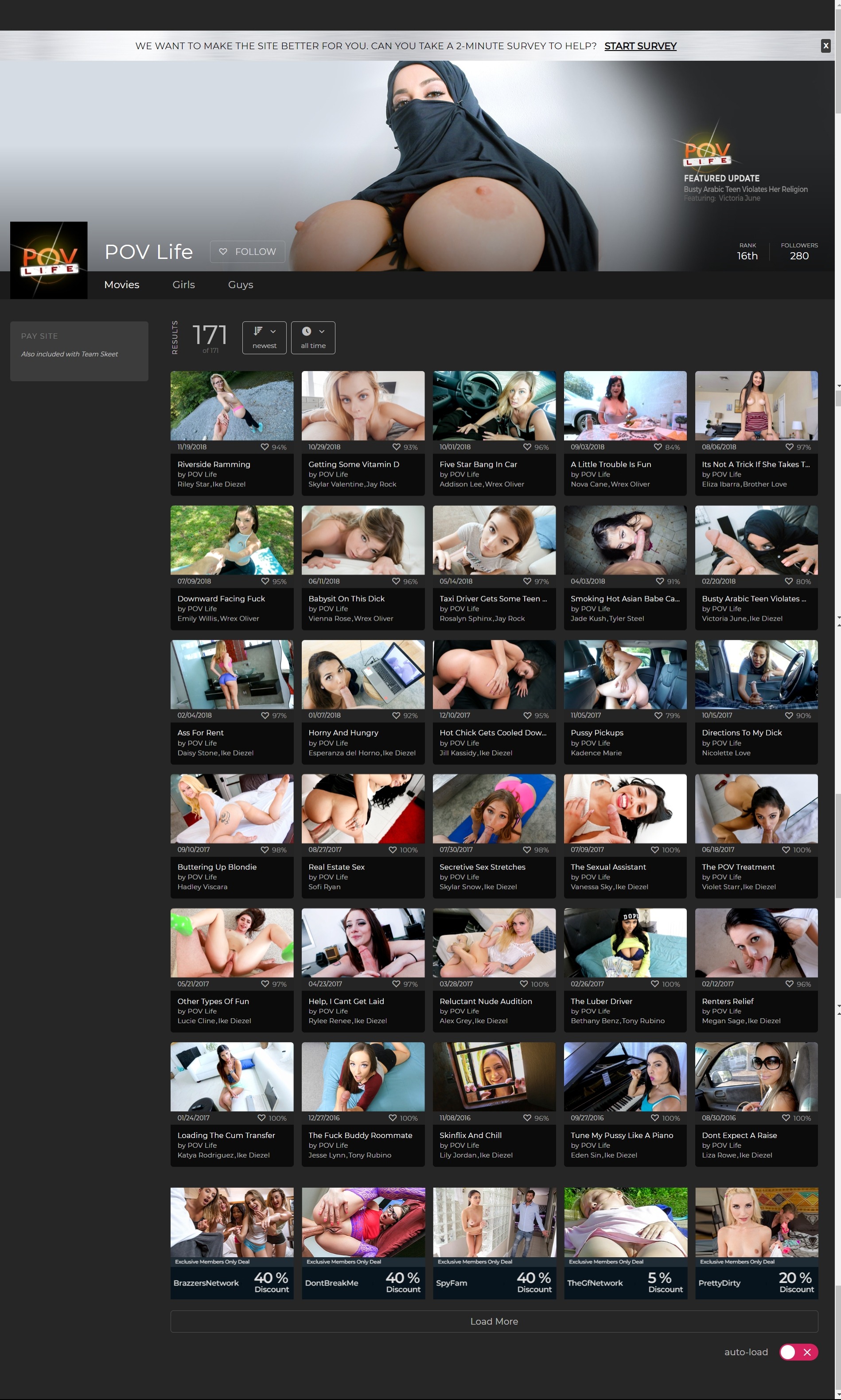 There are just over a hundred and seventy videos at POV Life at the time of writing, and the same number of galleries. You’ll find that a large chunk of the library of videos is already in full HD, and like any Team Skeet site you can download both videos and gallery archives. Meanwhile, the videos only tend to last around fourty minutes each. Each gallery of photos boasts a very decent photo resolution, and around one hundred and sixty individual photos. There are many useful browsing tools, plus you get access to all of Team Skeet. That last is important because updates seem to come in only every month. Naturally for Team Skeet, the actresses are young and gorgeous.